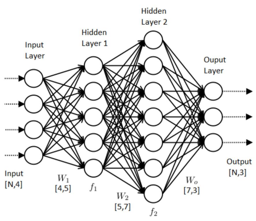 신경망은 다수의 입력 데이터를 받는 입력층(Input), 데이터의 출력을 담당하는 출력층(Output), 입력층과 출력층 사이에 존재하는 레이어들(은닉층)이 존재합니다. 여기서 히든 레이어들의 갯수와 노드의 개수를 구성하는 것을 모델을 구성한다고 하는데, 이 모델을 잘 구성하여 원하는 Output값을 잘 예측하는 것이 우리가 해야할 일인 것입니다. 은닉층에서는 활성화함수를 사용하여 최적의 Weight와 Bias를 찾아내는 역할을 합니다.