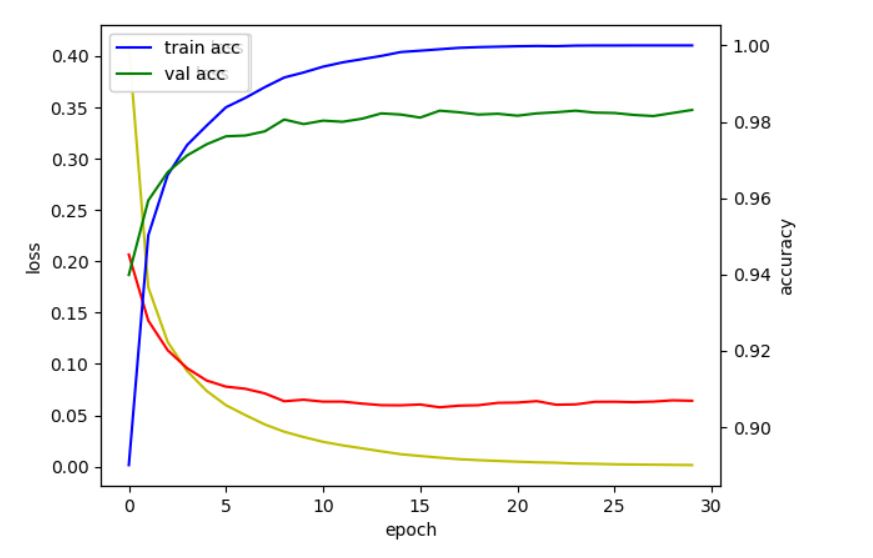 - loss : 훈련 손실값 - acc : 훈련 정확도 - val_loss : 검증 손실값 - val_acc : 검증 정확도