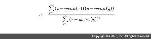 최소 제곱법을 통해 일차 함수의 기울기 a와 y 절편 b를 바로 구할 수 있습니다.