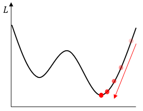 해당 함수의 최소값 위치를 찾기 위해 비용(손실)함수의 기울기 반대 방향으로 정의한 step size를 가지고 조금씩 움직여 가면서 최적의 파라미터를 찾으려는 방법이다.