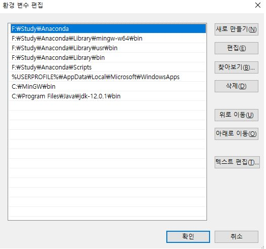 설치가 완료되고 환경변수를 확인해보면 알아서 아나콘다 경로가 환경변수에 들어가있습니다.