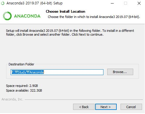설치 경로를 지정해 줍니다. 설치경로에 한글이 들어가면 간혹 에러가 발생할 수 있으니 영어로만 작성해주시면 됩니다.