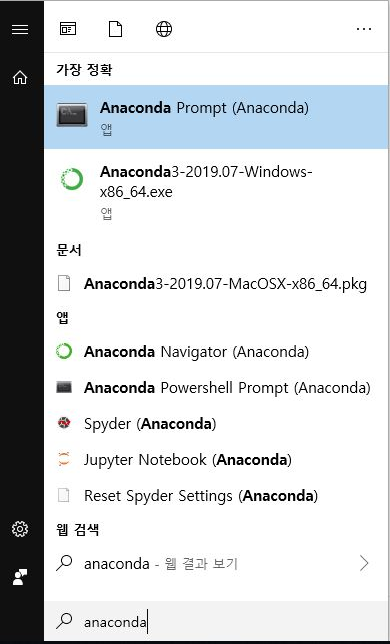 아나콘다 프롬프트 명령어 창에
