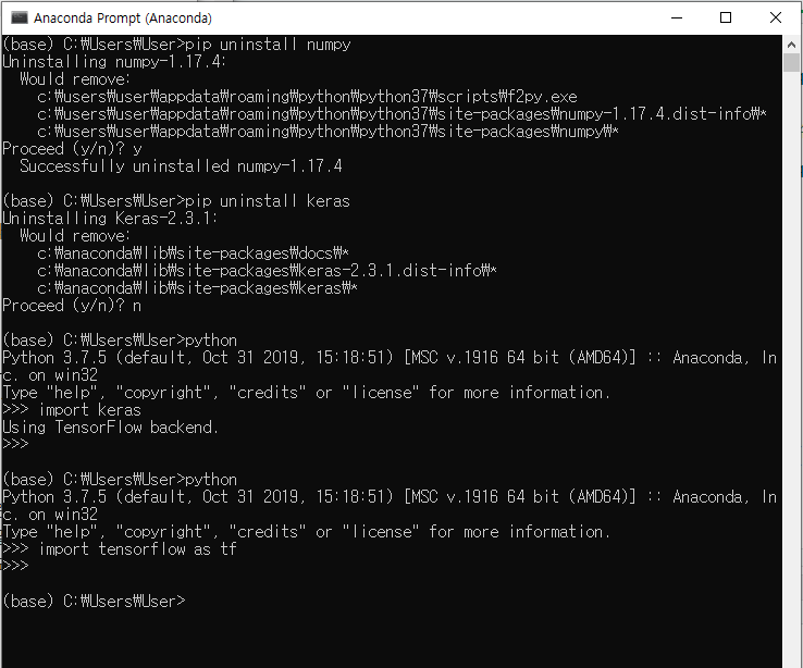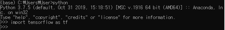 텐서플로우도 같은 방법으로 임포트 하였을 때 오류가 없다면 정상적으로 작동 되는 것 입니다.