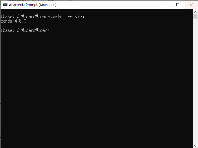 conda --version 명령어를 입력하였을 때, 버전이 뜨면 제대로 설치가 된 것입니다.
