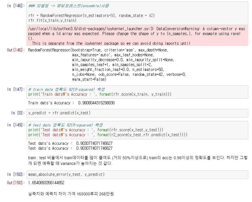 Random Forest 방식도 앙상블의 기법 중 하나입니다. 랜덤 포레스트의 포레스트는 숲이고 결정 트리는 나무입니다. 즉, 여러 결정트리들이 모여서 하나의 앙상블 모델을 이루는 것을 랜덤포레스트 모델이라고 합니다. 결정 트리에서 컬럼(Feature)가 많아지면 오버피팅 문제가 일어날 것입니다. 이를 해결하기 위해 Feature의 갯수를 추려 작은 결정트리를 여러개로 만들어 하나로 합치는 것을 랜덤포레스트라고 합니다.