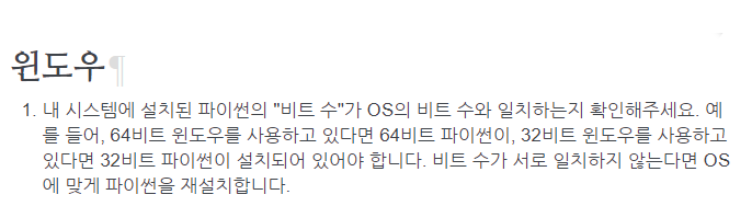 이때 파이썬과 OS버전을 맞춰야 하는데 최신 버전 다운로드페이지에는 32비트 버전이 없으므로 32비트 버전을 다운받으려면 더 이하의 버전페이지로 들어가야 합니다. (32비트 버전을 다운받을 경우 windowsx86이라고 쓰여져 있는 것 다운)