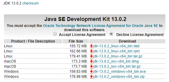 JDK download 클릭 후 맞는 운영체제, 맞는 비트버전의 jdk를 다운받아 줍니다.