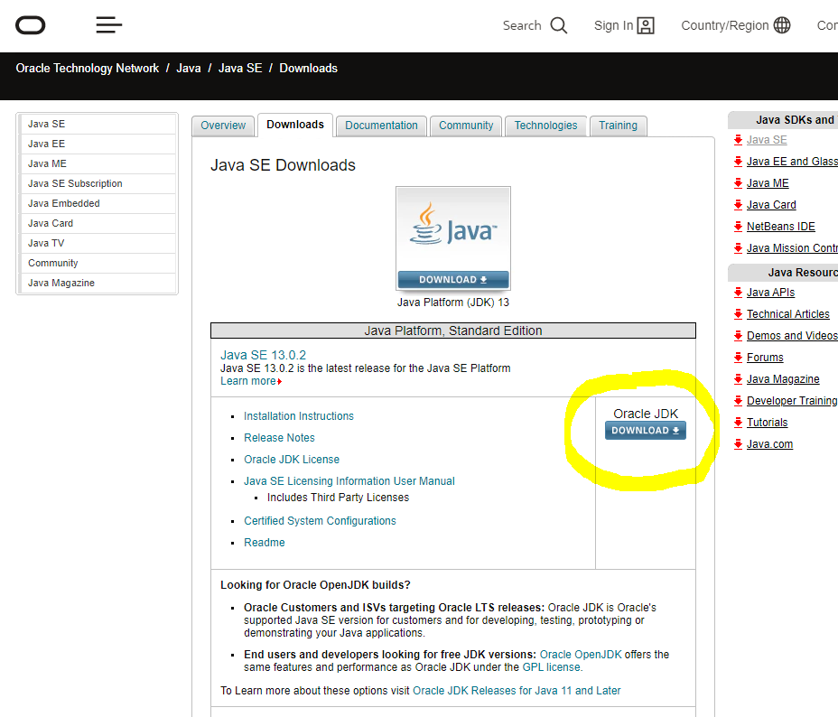 자바 다운로드 페이지 에 접속해서