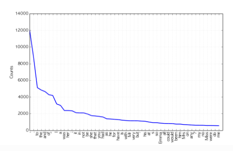 > FreqDist({',': 12018, '.': 8853, 'to': 5127, 'the': 4844, 'and': 4653, 'of': 4278, '"': 4187, 'I': 3177, 'a': 3000, 'was': 2385, ...})