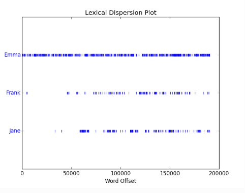 en.dispersion_plot(['Emma','Frank','Jane'])
