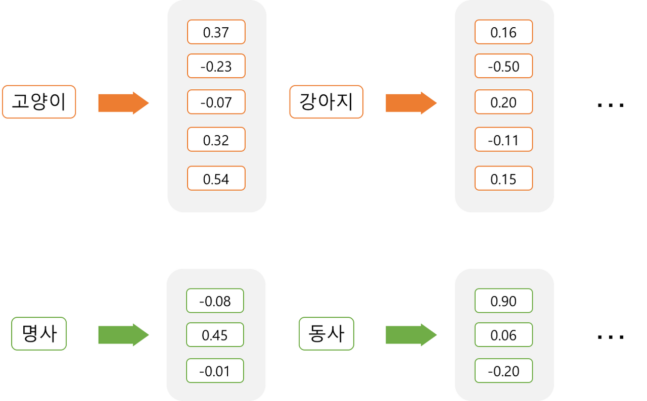 강아지 = [0.2 0.3 0.5 0.7 0.2 ... 중략 ... 0.2]