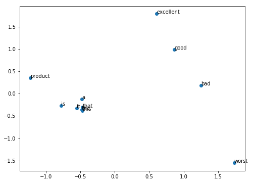 plt.annotate(v, xy=(xs[i], ys[i]))