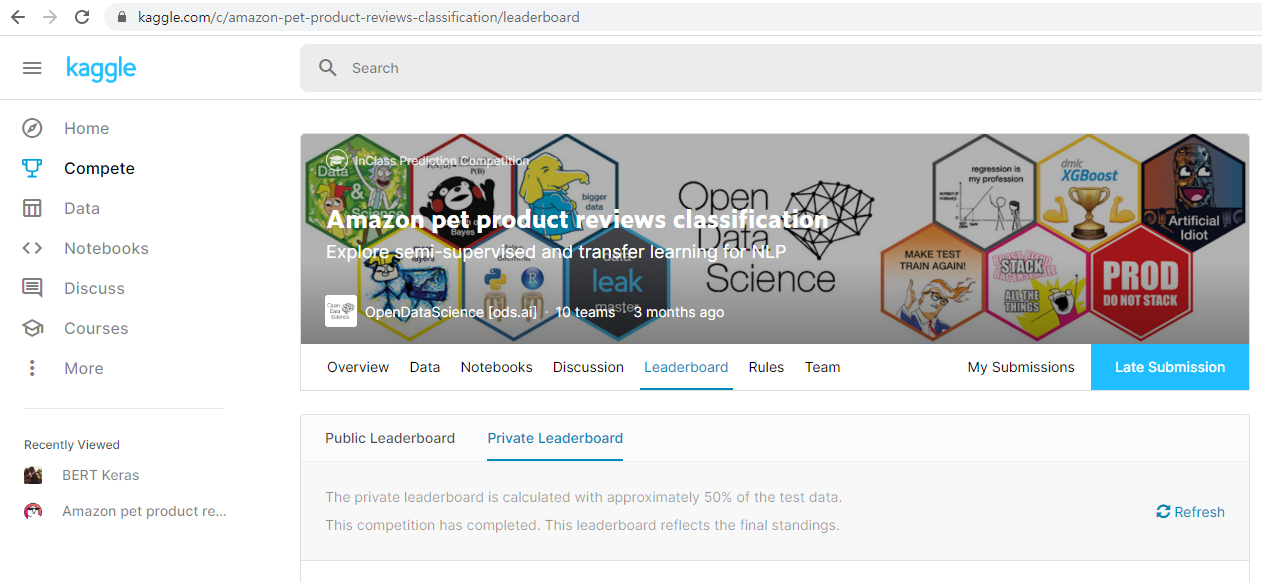 약 열달 전쯤 나왔던 문제이고 텍스트 분류 문제 입니다. 리뷰에 관한 내용이 dogs에 관한 것인지, cats에 관한 것인지 그 외 (fish, birds 등)인지 분류하는 문제 입니다..!