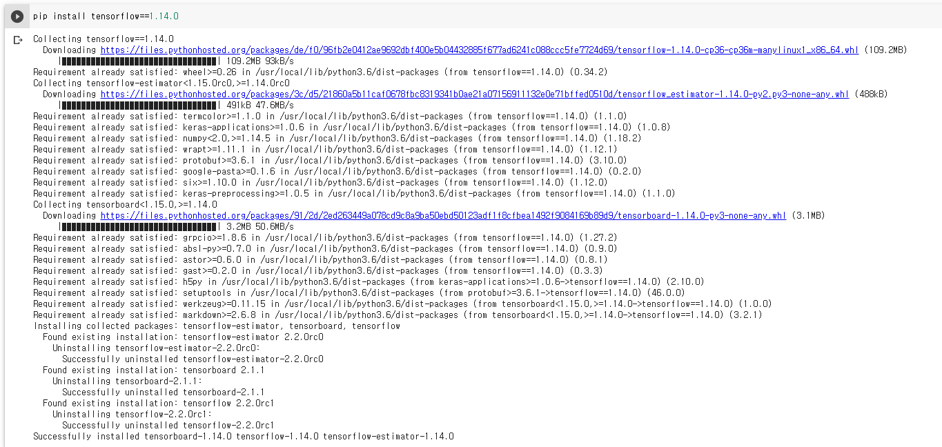 그냥 tensorflow 1.14버전을 설치하여 훈련을 진행하였습니다.
