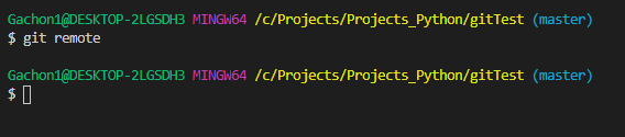 이후, git remote 명령어를 입력.