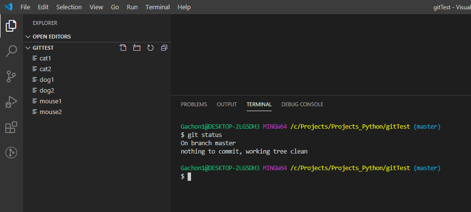 저번 포스팅에서 테스트할 때 사용했던 gitTest라는 폴더를 그대로 사용합니다. git init과 git config 등 초기화 되었다고 가정.(1편 참조)