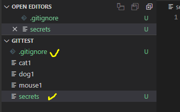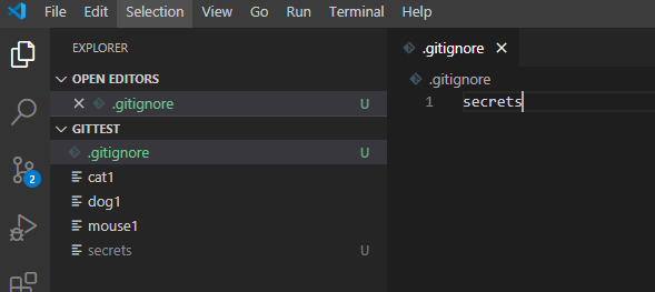 .gitignore 과 secrets라는 파일을 생성합니다.