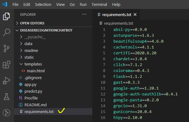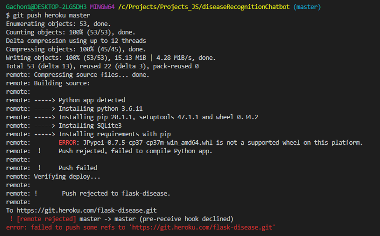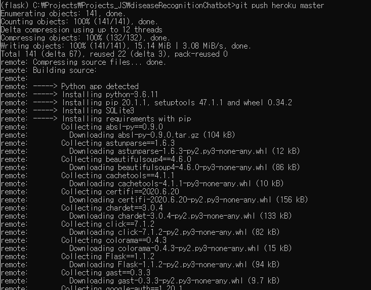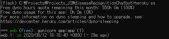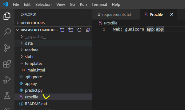 그리고 Procfile을 생성해주는데, 서버파일을 명시해주는 부분입니다. 저는 서버코드가 app.py이름이기 때문에 app이라고 명시해 준 것이고