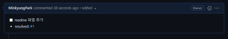 * resoved 뒤에 이슈넘버를 입력합니다. 이슈넘버를 클릭하면 해당 이슈로 넘어갈수 있습니다.