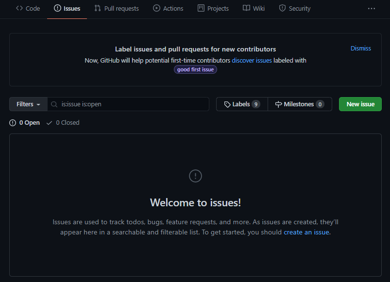 New issue 버튼을 눌러 새로운 이슈를 생성해줄 수 있습니다.