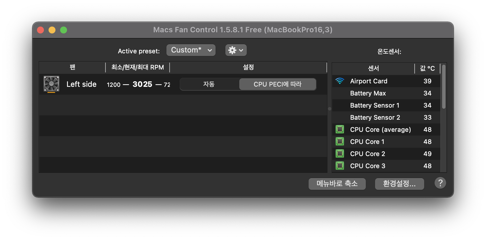 맥북 모니터랑 연결해서 쓰면 발열이 너무 심해서 팬 속도 조절하는 용으로 쓰고 있는데