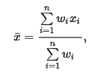 가중치 wi를 곱한 값들의 총합을 다시 가중치의 총합으로 나눈 것