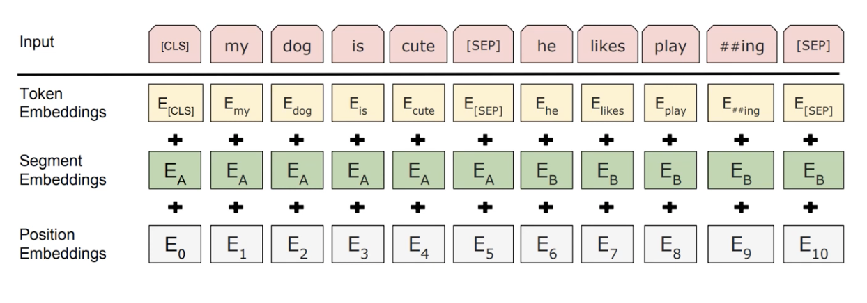 - input embedding은 3가지 embedding의 element wise sum으로 입력
