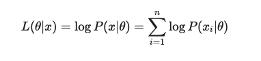 likelihood function의 최대값을 찾는 방법을 MLE라고 한다. 계산의 편의를 위해 log-likelihood function의 최대값을 찾으며 최대값을 찾을 때 '미분계수'를 이용한다. 셰타에 대해 편미분하고 그 값이 0이 되도록하는 셰타를 찾는 과정을 통해 L(셰타|x)를 최대화 하는 셰타를 찾으면 된다.