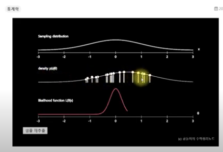 표본 데이터(sample)를 모두 평균 값으로 지정해 likelihood 값을 계산하고 likelihood가 가장 큰 지점을 찾는다. 이렇게 찾게된 지점은 데이터와 제일 잘 맞는 모델과 추정치를 계산할 수 있게 된다.