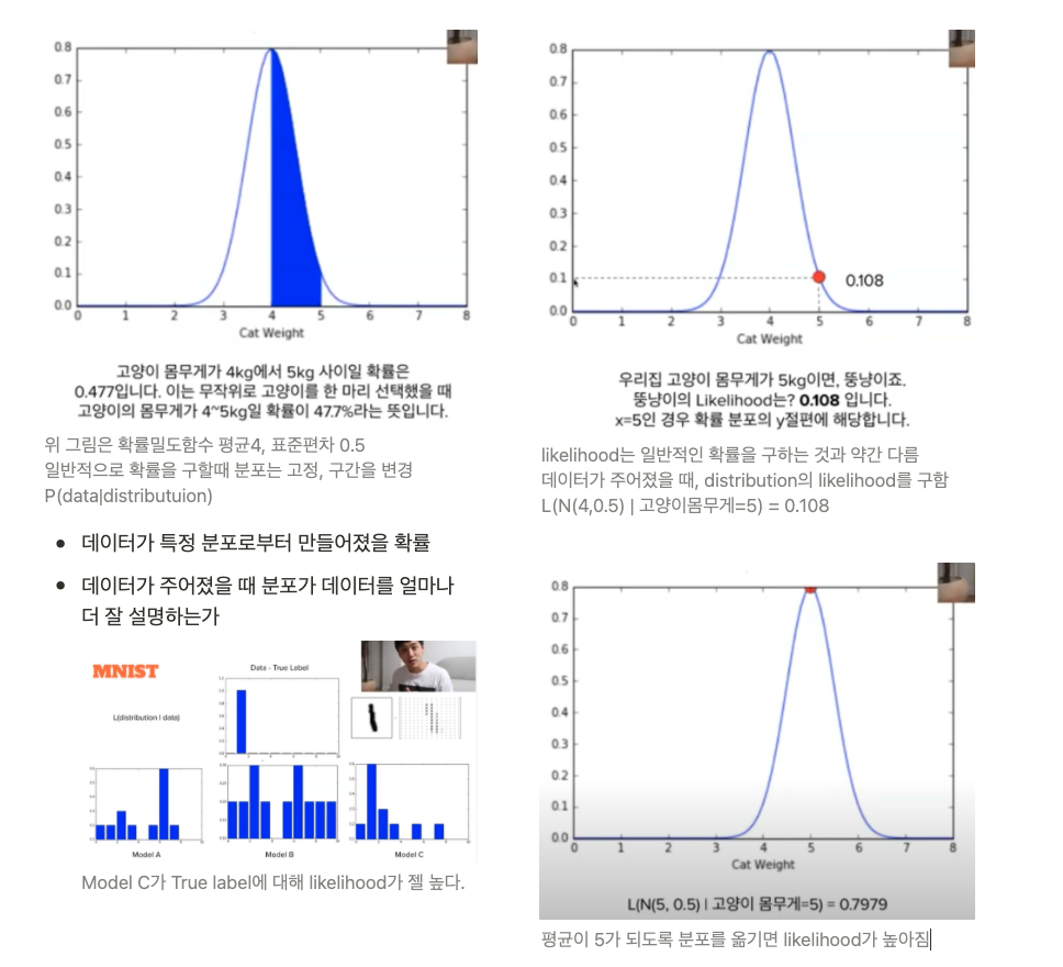 확률은 P(data|distribution) 분포가 주어졌을데 데이터의 확률을 의미하며,(분포는 고정)
