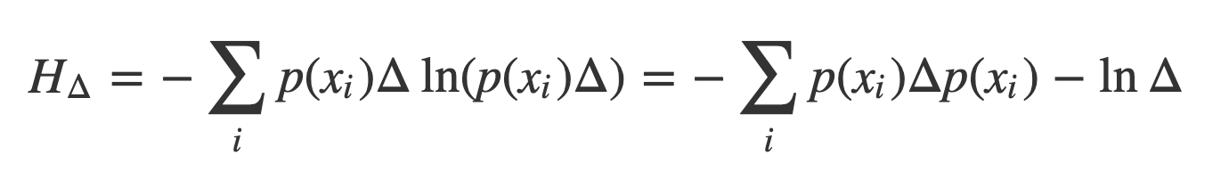 Continuous 인 경우에 Entropy는 위 식과 같이 정의할 수 있다.