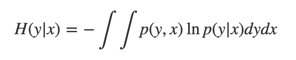 Mutual information을 Bayes perspective에서 바라보게 된다면, 만약 우리가 어떤 데이터 x의 prior p(x)를 관측하고, 새로운 데이터 y를 관측해 얻은 posterior distribution p(y|x)가 있다고 했을 때, Mutual information은 이전 관측 x를 통해 새로운 관측 y의 uncertainty가 얼마나 줄게 되는지 알 수 있다.