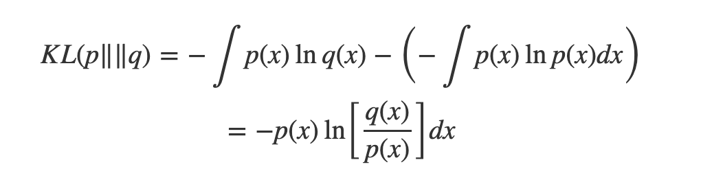 Continuous 인 경우는 위 식처럼 쓸 수 있다. Discrete한 예측 레이블이 아닌 Continuous한 Distribution을 비교하는 경우는 위와 같이쓴다.