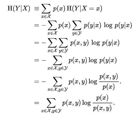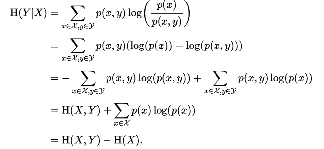 그리고 확률변수가 2개인 경우 joint distributuion P(x, y)에 대해 우리가 알고 있는 정보는 x라고 할 때 y의 information의 양을 계산하는 Conditional Entropy는 위 수식과 같다. 그리고 Chain Rule은 H(x, y) = H(y|x) + H(x)를 항상 만족한다.