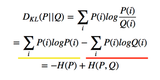 KL Divergence는 근사 모델(Q)를 실제 분포(P)와 가깝게 만들기 위한 목적 함수(objective function)로 사용하고 KL-divergence가 최소화 되도록 학습하게 된다. 그리고 머신러닝에서 learning하는 것은 Q이기 때문에 cost(loss)를 Cross Entropy로 잡으나 KL-divergence로 잡으나 동일하다.