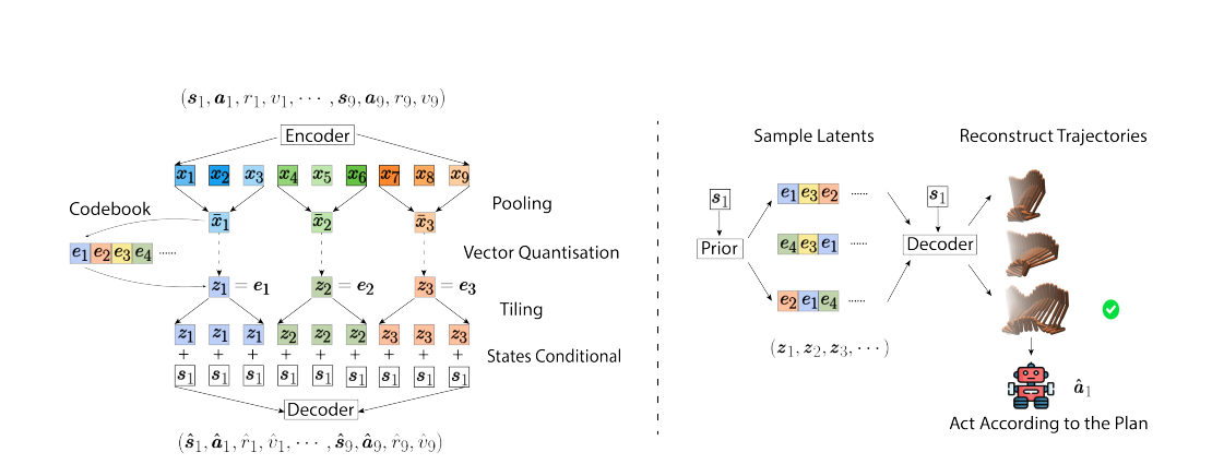 - state-conditioned VQ VAE를 trajectory를 모델링해서 compact latent space에서의 planning이 가능하게함