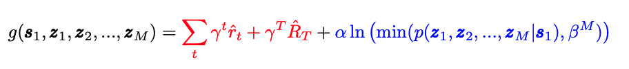 initial state s_1과 prior에서 샘플된 latent z가 주어졌을 때, decoding 된 trajectories를 가지고 가장 좋은 trajectory를 판단하기 위한 creterion g는 위 수식과 같다.