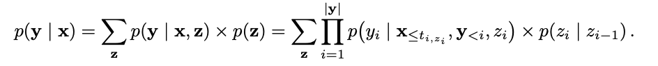 그리고 구한 marginal likelihood p(y|x)는 데이터셋의 target sequence에 대해 negative log-likelihoode loss로 HMT를 optimize하게 된다.