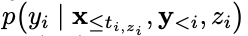 그리고 emission probability는 state s_{i, z_i}에 의한 관찰된 y_i의 확률로 표현된다.