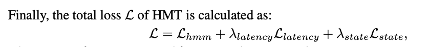 그래서 최종 loss는 hmm loss, latency loss, state loss를 모두 합한 것으로 정의되며 lambda는 hyperparameter로 여기서는 모두 1을 사용했다고 한다.
