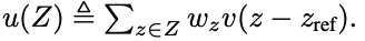 가중치 함수 w는 누적 확률을 perceived 누적 확률에 매핑하는 capacity function의 도함수이다. 이 함수는 예를 들어 인간이 희귀한 사건의 발생 가능성을 과대평가하는 경향이 있다는 것을 포착한다. w_z는 z에 부여된 가중치를 의미한다.