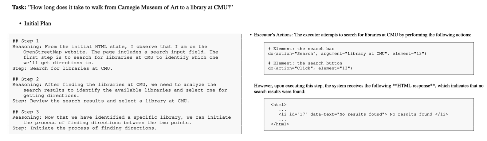 - EXECUTOR: 생성된 계획을 실제 환경에 맞는 구체적인 행동으로 변환