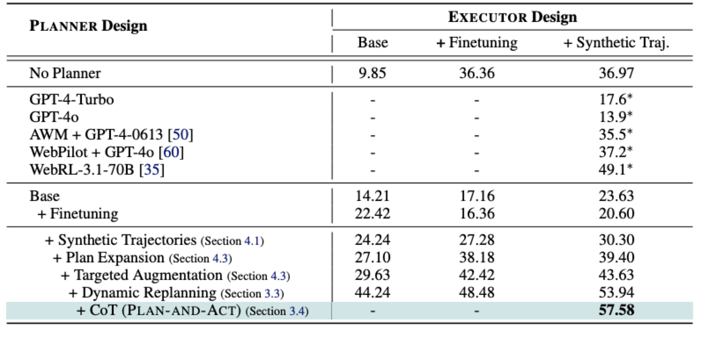 | + CoT Reasoning | Planner와 Executor 모두에 reasoning trace 포함 |