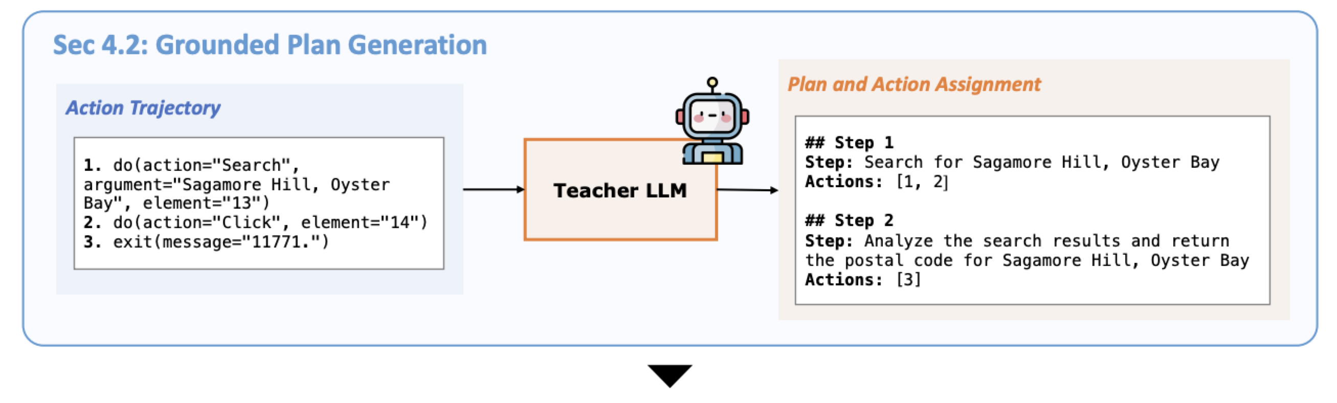 - LLM이 이 궤적을 기반으로 현실과 정렬된 고수준 계획을 재구성하게 한다.