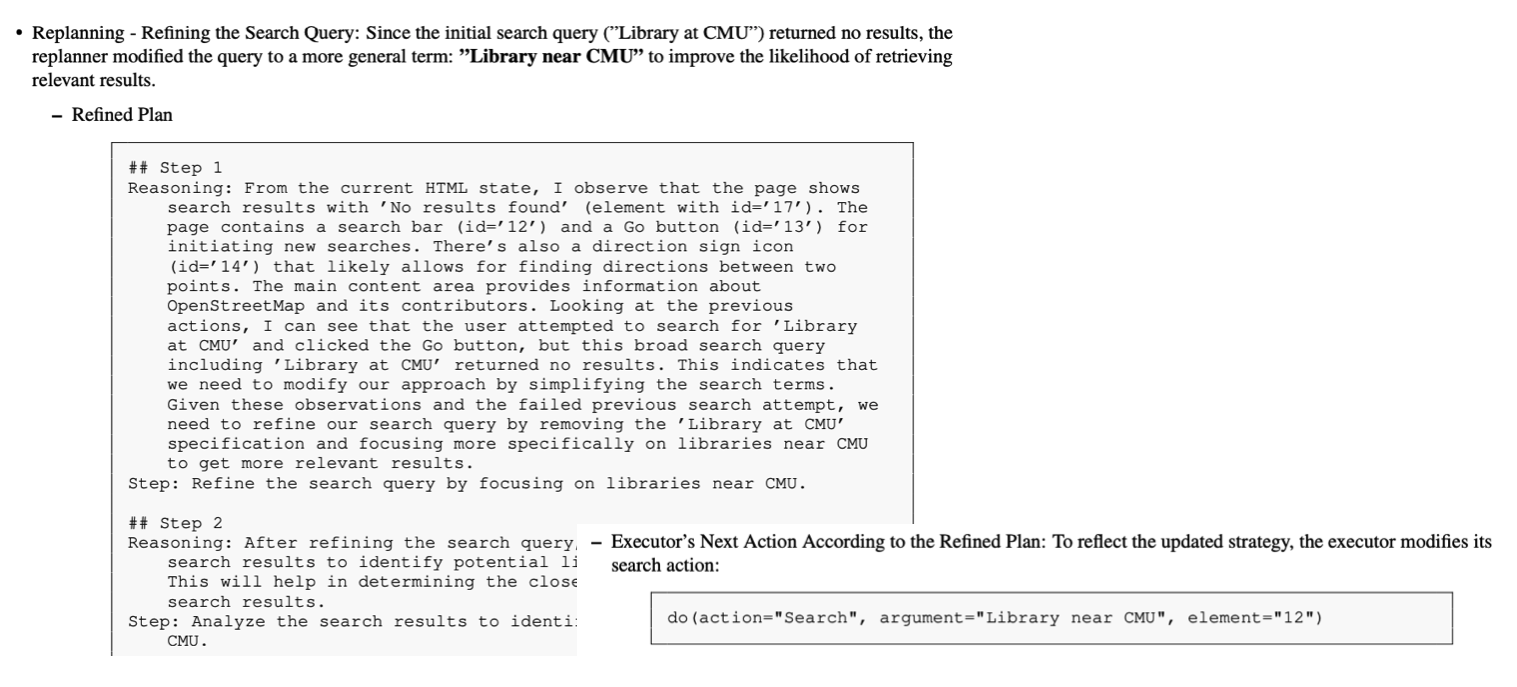 | + Dynamic Replanning | Executor 행동 이후 Planner가 매번 계획을 갱신 |
