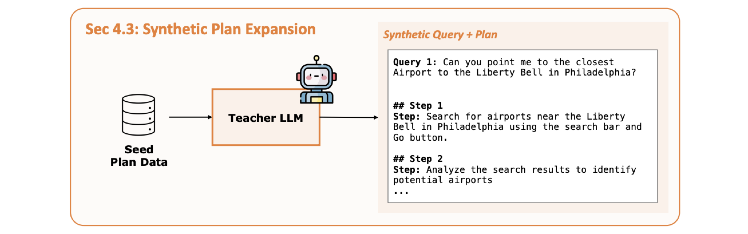 기존 query-plan 쌍을 기반으로 유사 계획을 다수 생성한다. LLM이 조건을 바꾸거나 단계 수를 변형해 다양한 변형 샘플을 생성한다.